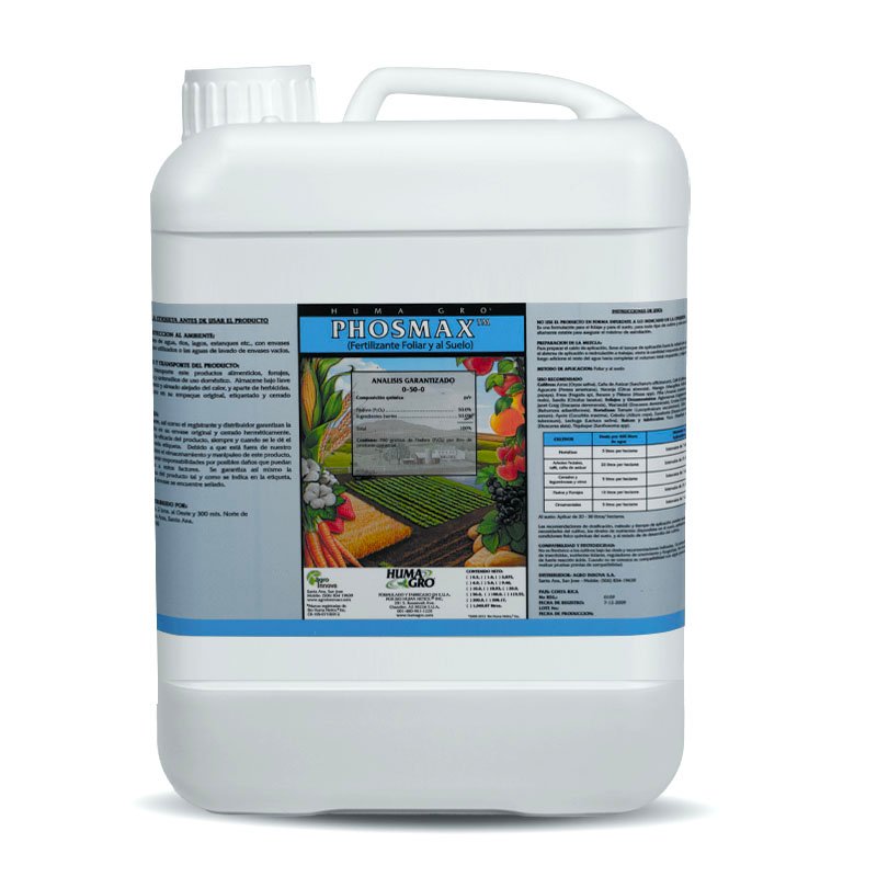 Fertilizante líquido Fósforo, no se inmoviliza en el suelo y se mantiene soluble en agua y disponible. No se bloquea por arcillas, iones metálicos o MO