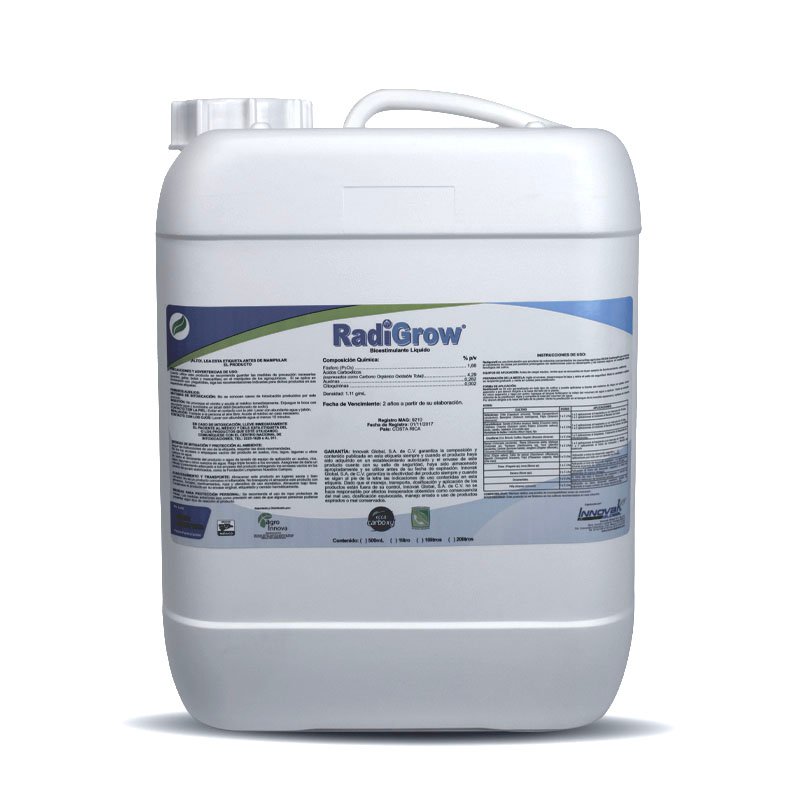 Aporta hormonas en un balance adecuado y fósforo de acción inmediata sobre la raíz, además los ácidos ECCA Carboxy® promueven la biosíntesis de Myoinositol en cantidades suficientes para favorecer la eficiente translocación de las auxinas sintetizadas por la planta y las adicionadas por RadiGrow®, brindando seguridad de respuesta por un periodo prolongado en cualquier etapa fenológica del cultivo.