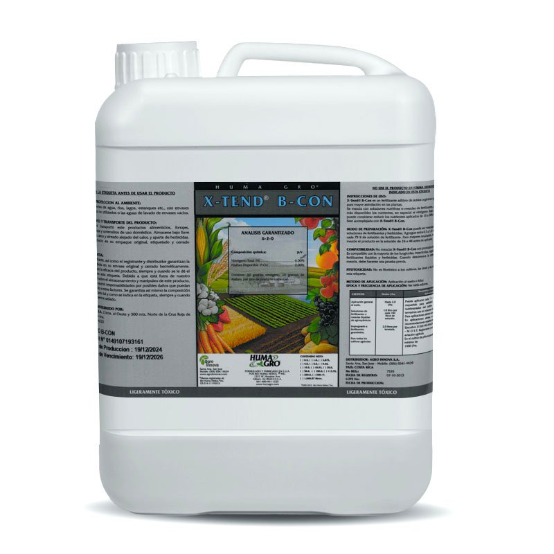 XTEND B CON® es un fertilizante aditivo de ácidos orgánicos con un colorante azul que acompleja nutrientes los nutrientes en solución. XTEND B CON® funciona para dar estabilidad y disponibilidad de nutrientes en soluciones y mezclas de fertilizantes, especialmente para las soluciones de nitrógeno. Bajo condiciones ideal, se puede considerar reduciendo la cantidad de nutrientes aplicados de 15% a 30% cuando la solución este bien complejado con XTEND B CON®.